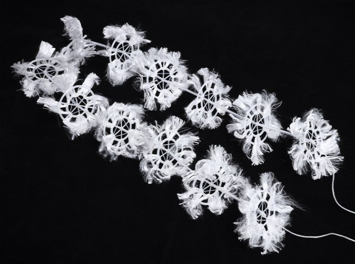 产品摘要: 组合填料是在软性填料和半软性填料的基础上发展而成的,它兼有两者的优点。其结构是将塑料圆片压扣改成双圈大塑料环,将醛化纤维或涤纶丝压在环的环圈上,使纤维束均匀分布;内圈是雪花状塑料枝条,既能挂膜,又能有效切割气泡,提高氧的转移速率和利用率。